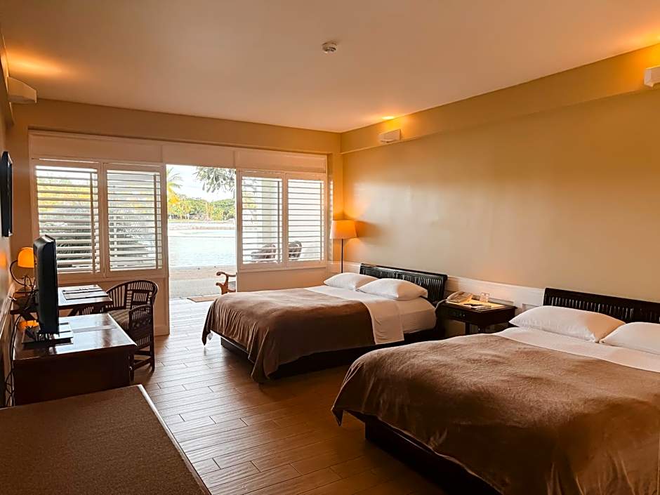 Ground-Floor Beachside Room is 495 square feet and includes either a king-size bed 150-183 width or 2 queen-size beds 150-154 width plus balcony, terrace, desk, cable tv, hairdryer, tea and coffee making facilities , safe, and slippers and is Wheelchair-accessible.
